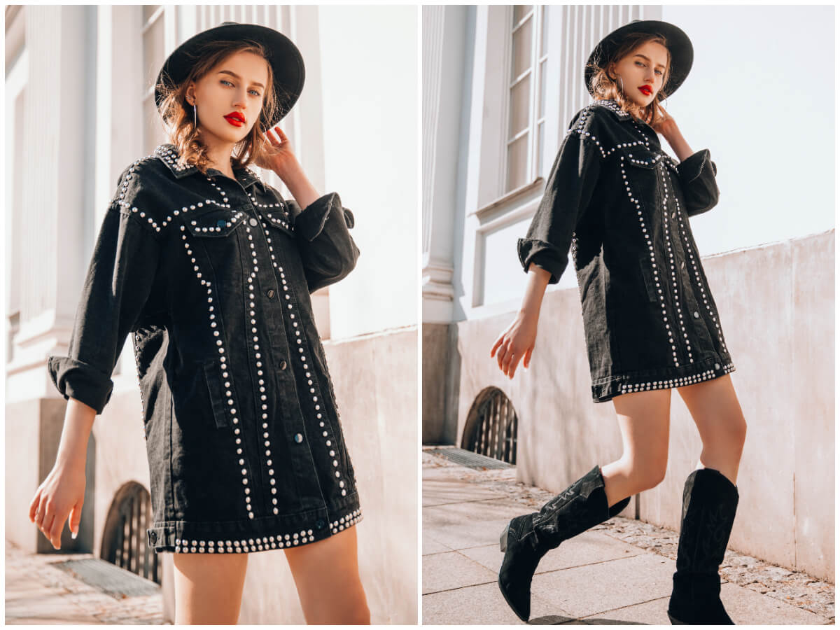 Styl grunge - jeansowa kurtka z ćwiekami